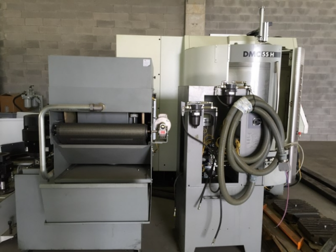 1#1282 Centro di lavoro orizzonatale Deckel Maho, modello DMN 55 H duoBLOCK, matricola 11680000393, ore di lavoro 19994, 560x600x600 mm. Azionamento principale: elettromandrino 12.000 l/min, 20 Kw (40%/100% ED). Alloggiamento utensile secondo DIN 69871, serraggio utensile DIN 69872. testa a fresare orizzontale, sistema di cambio utensile: sistema pick up. Magazzino a ruota, 45 posti SK 40. Tavola indexata 360x 1° con supporto pallet. Cambio pallet circolare, 2 pallet 400x400 mm con scanalature a T secondo DIN 55201-A2. Serbatoio refrigerante 500 1. Trasportatore trucioli. Controllo continuo 3D.