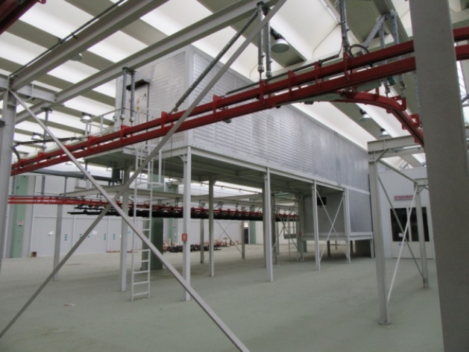 Linea di pretrattamento, cataforesi e verniciatura a polvere, costruttore EISENMANN, matricola 52-1108 anno di costruzione 2004 Cabina per applicazione polvere costruttore ITW GEMA AG modello Magic cylinder QCS 2000 matricola G183 anno 2003 comprensiva di: sistema di setacciatura, sistema di pulizia delle pistole, quadro di comando, sistema di individuazione pezzi, gruppo di applicazione polveri con sistema elettrostatico Impianto trattamento acque refluee costruttore C.I.E. modello scarico zero da linea trattamento al fosfato di zinco matricola 59004 anno di costruzione 2004 Sistema per il controllo ed il dosaggio di prodotti chimici CHEMGUARD 800 e costruttore C.I.E. srl anno 2004 GUARDA IL VIDEO Si invitano le parti interessate a registrarsi al sito e scaricare condizioni di vendita e ritiro relazione tecnica dati tecnici componenti linea. I dati tecnici indicati nel PDF fanno riferimento allo stato della linea al momento della fornitura. E' necessaria un' ispezione in loco per prendere diretta visione dello stato dei beni. Parte della linea necessita di ricertificazione CE.